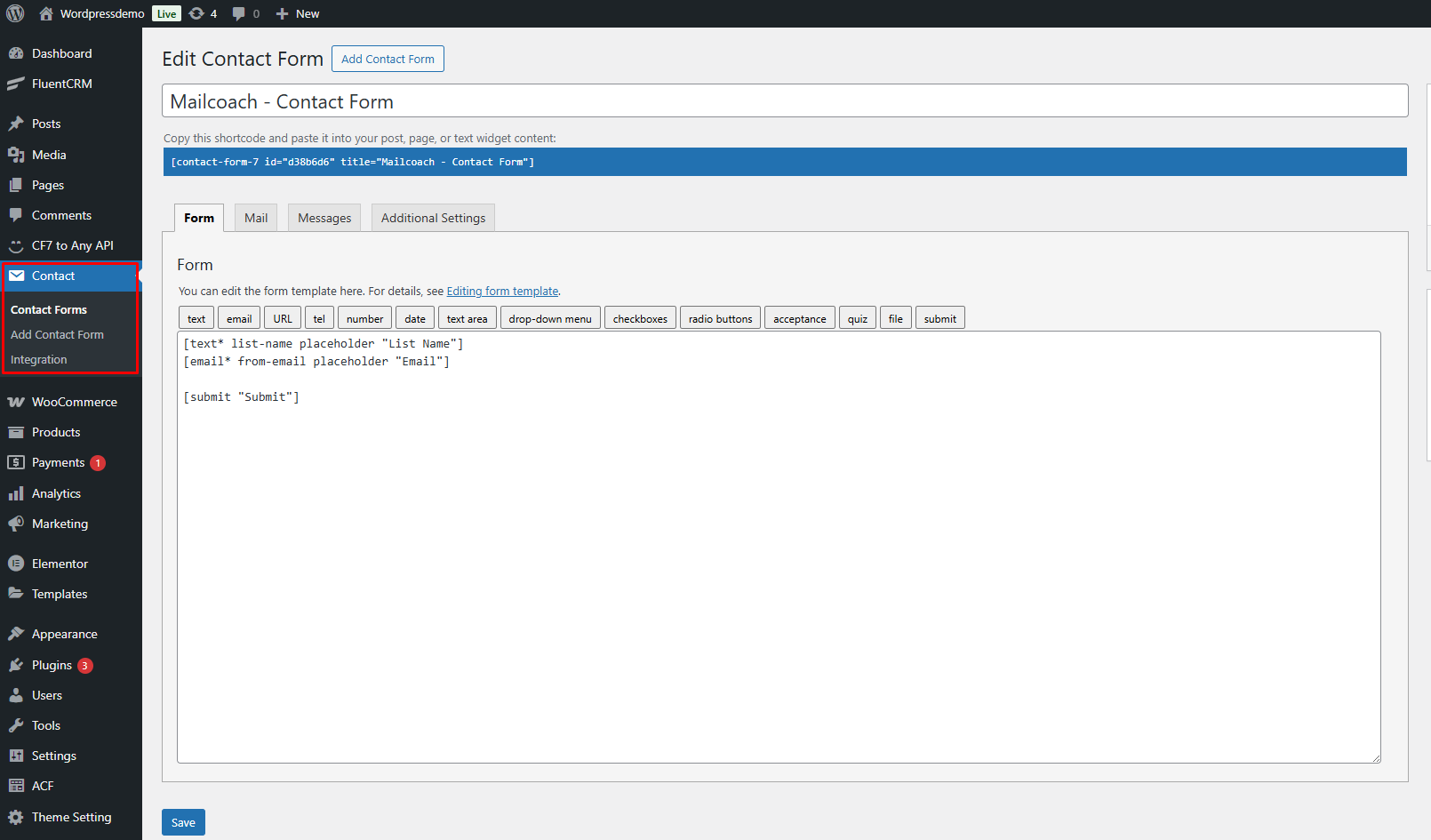 Step 2: Create New Contact Form & Name it as Mailcoach – Contact form